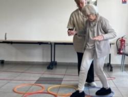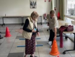 Dans le cadre de la prévention des chutes, Naty propose un atelier « Parcours de marche » chaque vendredi mêlant des résidents du secteur ouvert et des résidents de l’UPPD présentant un risque de chute.