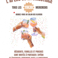 Publiée le 26/01/2026Chères familles, La résidence est heureuse de vous inviter à un moment de partage et de bonne humeur : l’Apéro de la Directrice 🎉 Un temps convivial pensé pour favoriser les échanges, les rencontres et les sourires. 📍 Où ? Au Salon des Oliviers Lire la suite