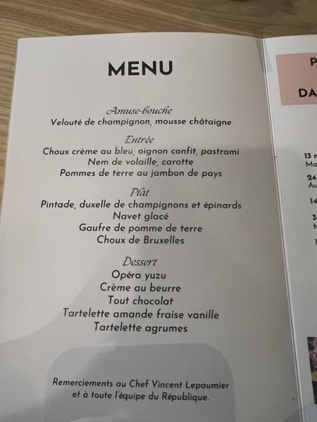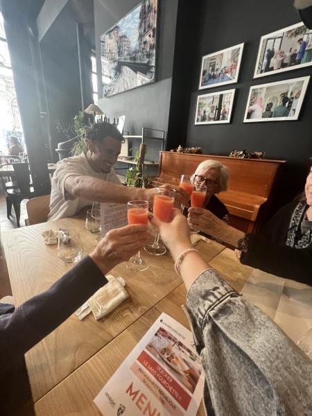 Un groupe de résidents de l’EHPAD a eu la chance de vivre une expérience culinaire originale au restaurant le République, accompagnés par Coralie l’animatrice et Liham enseignant en activités physiques adaptées. Ensemble, ils ont découvert le concept du repas « sans fourchette » une formule proposée par l’établissement ou les plats sont spécialement conçus pour être dégustés directement avec les mains. Cette sortie a offert un moment convivial, ludique et hors du commun, qui restera un joli souvenir pour les participants.